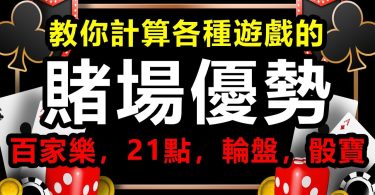 值得考慮的賭場優勢低的遊戲是: 21點,骰寶,百家樂和某些電子撲克但是有些網站對於玩百家樂所投注的錢不記在賭場針對紅利要求的下注額中,骰寶遊戲所需的時間又太長,綜合考慮只有21點最適合用來賺取紅利。