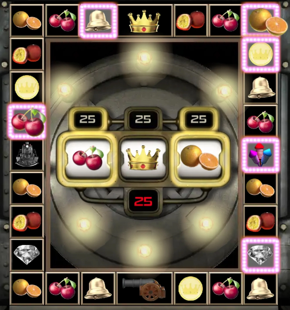 這款遊戲結合了兩個經典款遊戲,就是瑪莉水果,跟水果盤777,中間三個框的會先跑出3種不同的組合,或者3個都相同,也可能2個相同,以中間這3個框的組合為基準,外圍列車在跑的格子就是你命中的項目,如果中間3個框有出百香果,你的列車剛好跑到百香果,你就中獎了,再來就看你的3個框出現幾顆百香果,如有2顆百香果中獎金額就會加倍,以此類推…如3個框都是百香果就是3倍!